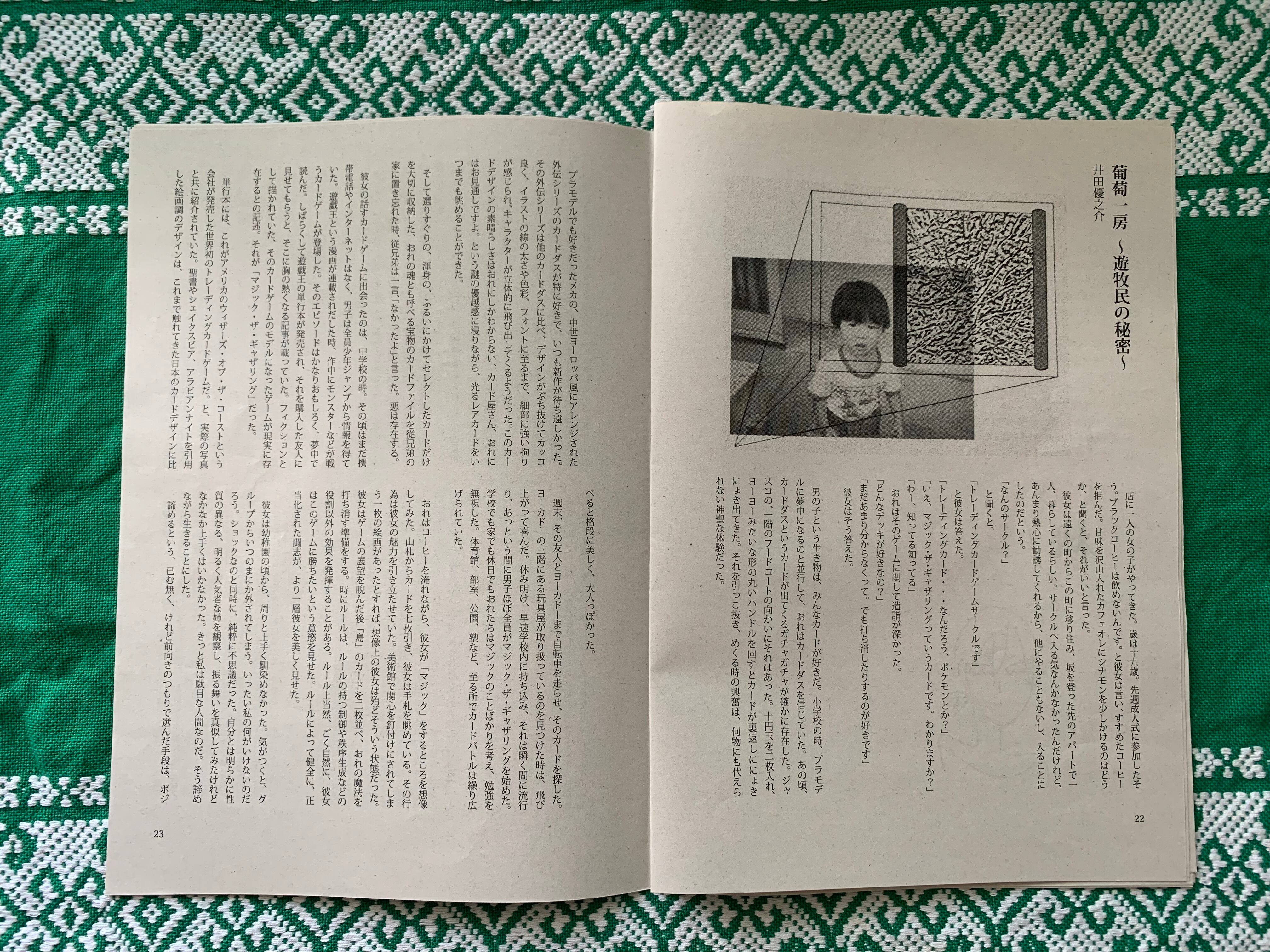 13名の作家によるエッセイ、小説、イラスト、写真、コラージュなどが掲載されています。